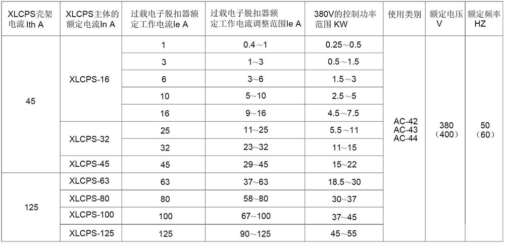 · XLCPS系列控制與保護(hù)開關(guān)主體殼架分為: 45A、125A。